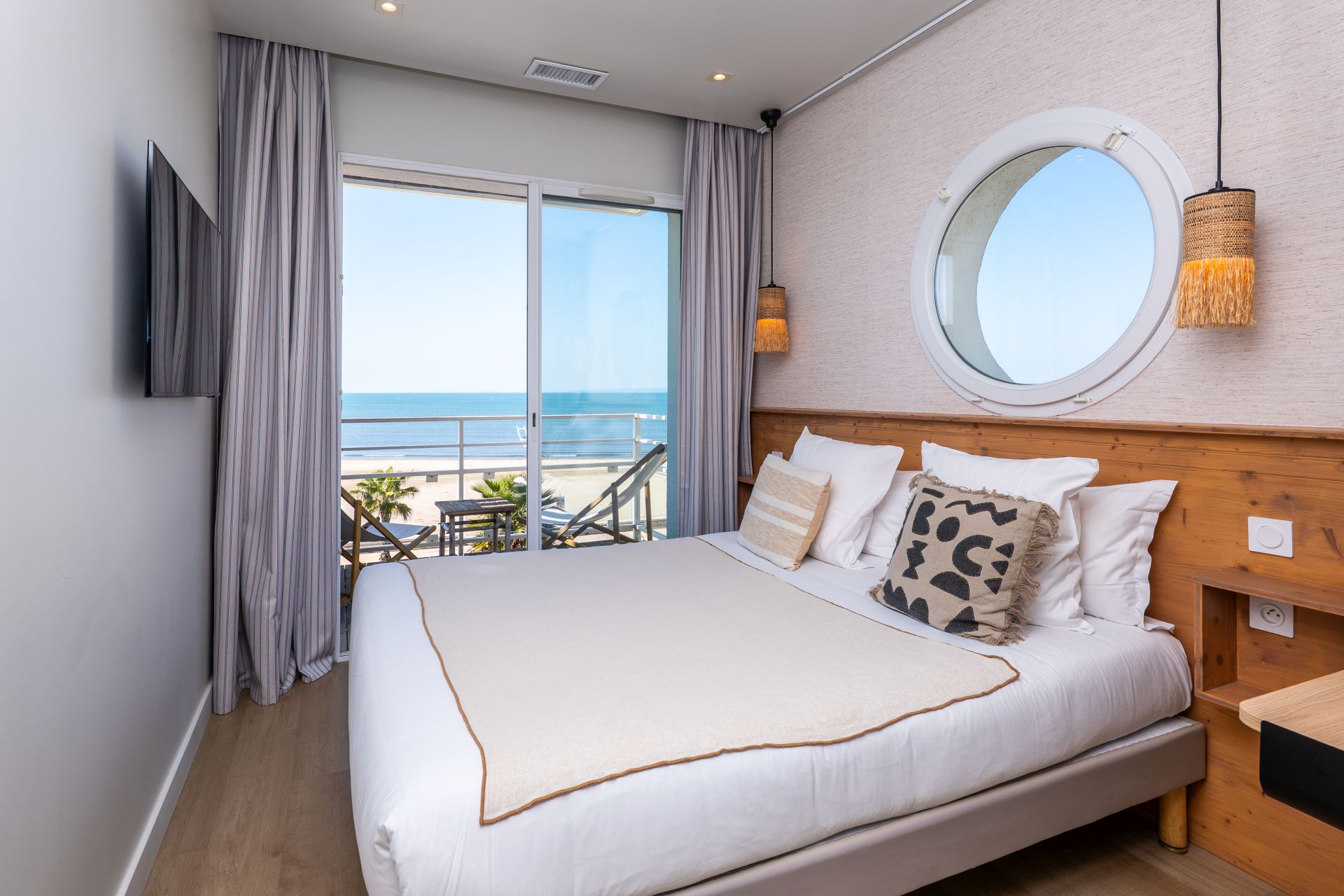 Enjoy a breathtaking sea view of Grau du Roi Port Camargue during your stay in one of our double rooms.